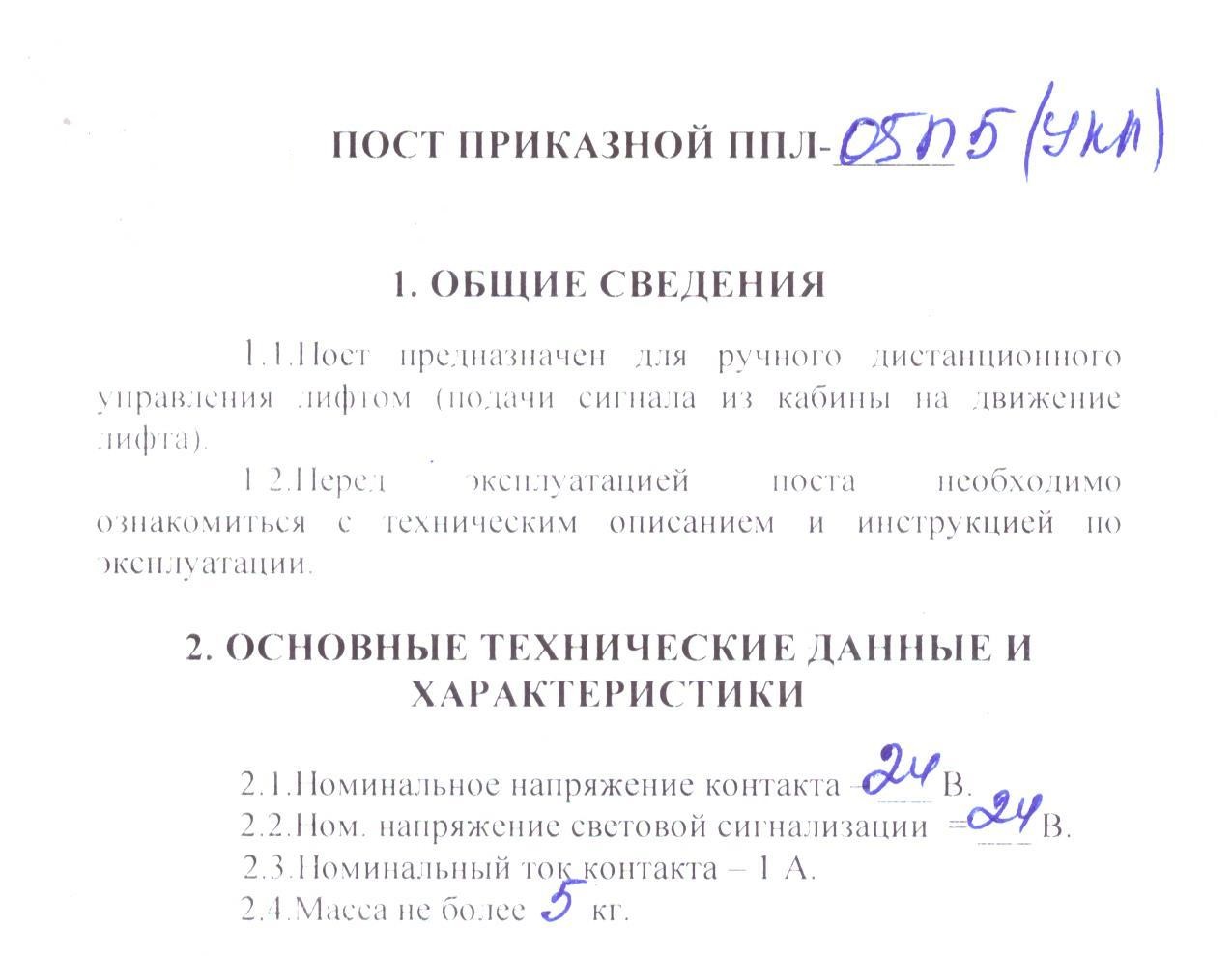 Полное наименование: Пост приказной лифтовой ППЛ-5П5 (УЛ, УКЛ)
